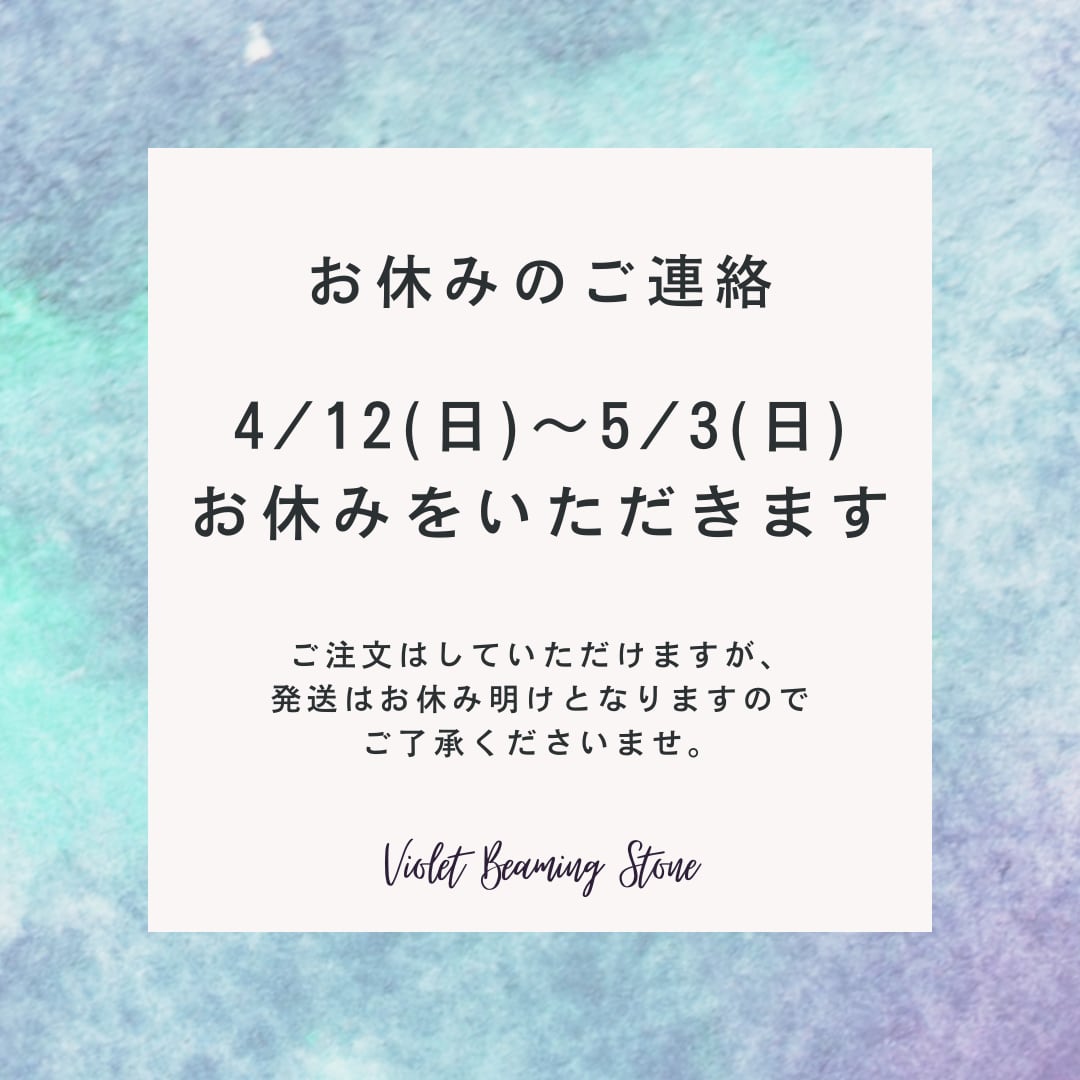 4/12(日)〜5/3(日)まで、お休みをいただきます。
