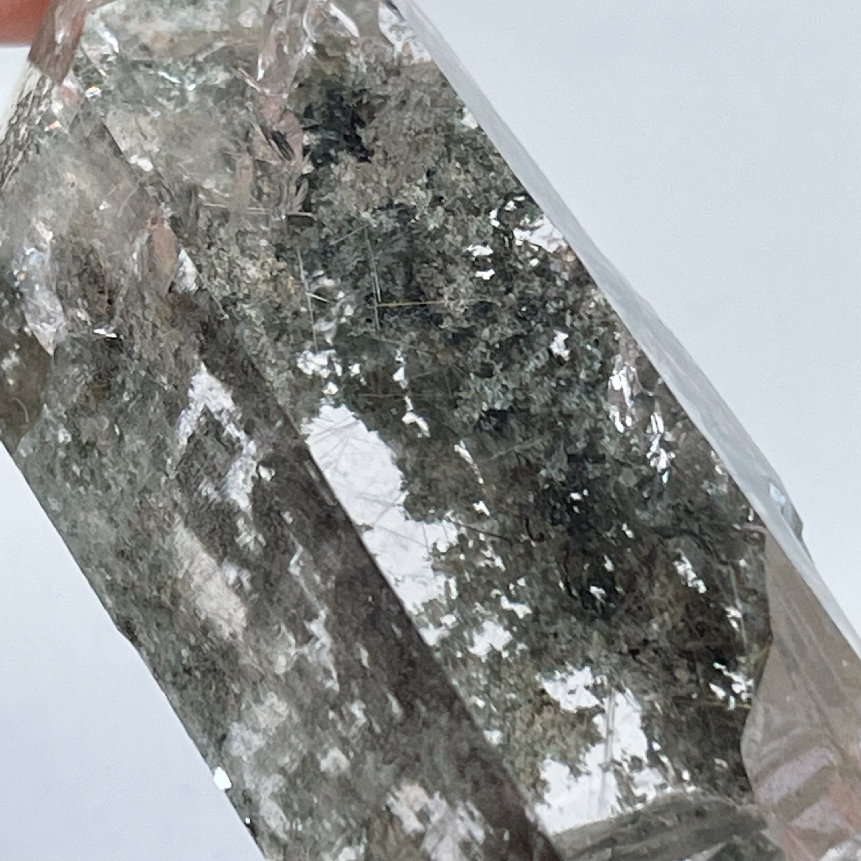 先端はタビー形状で、モスグリーンのクローライトが映し出すガーデン模様も美しいです。